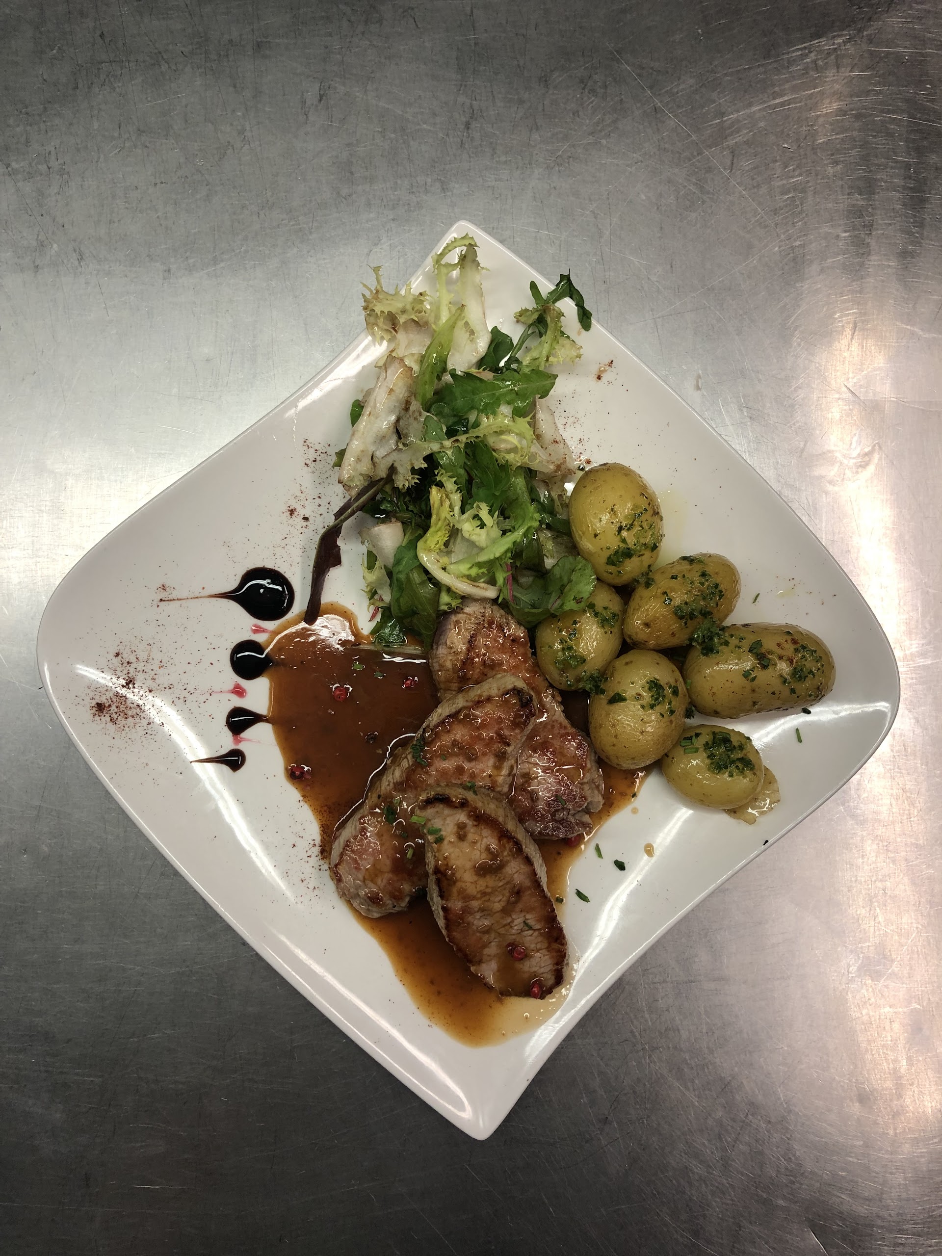 "Pour déguster au milieu de st emilion une bonne salade du sud ouest avec ses gésiers foie gras et jambon, ou un filet de merlu. N'hésitez pas à goûter en apero les grillons de canard. Merci pour l'accueil et le service"