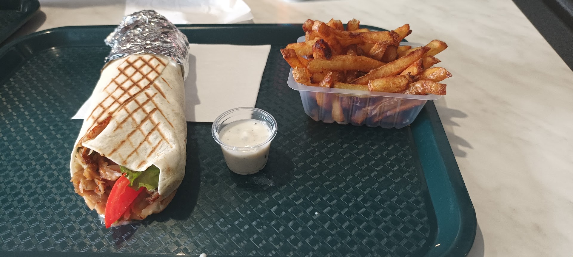 "J’ai tester ce kebab suite aux avis déposés et franchement je ne le regrette pas du tout Les produits sont frais j’ai appréciée que les tomates et oignons soient coupés lors de la préparation c’est rare de voir ça pour ma part c’est même la première fois et c’est très appréciable le pain est moelleux et très bon ainsi que la viande découpée finement Les frites maison sont aussi très bonnes Très bon accueil le propriétaire est aimable et sympathique Je recommande sans aucune hésitation"