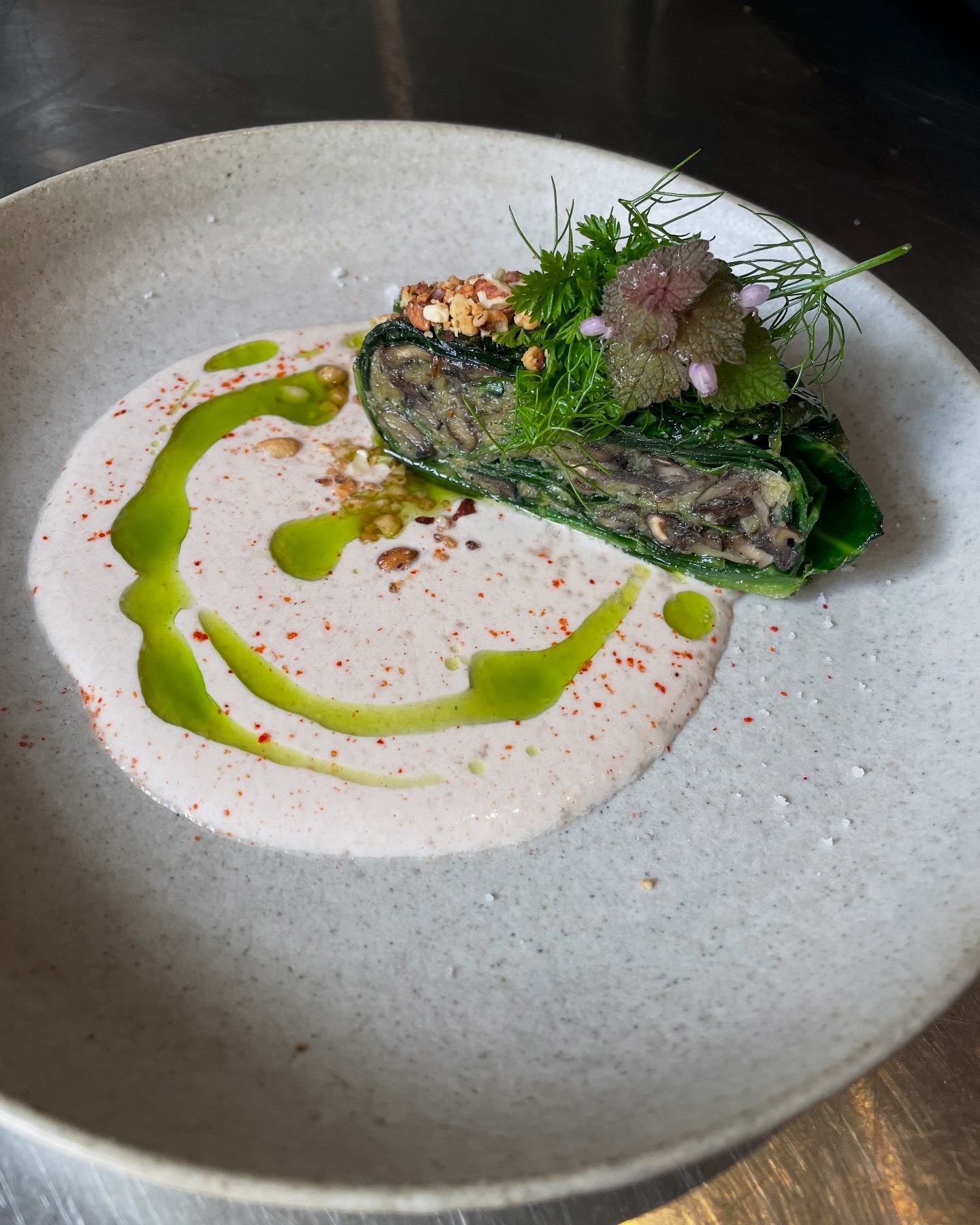 "Cusine découverte lors dun repas pris en collectivité (Centre de réadaptation des Glamots), et végétarien puisque "le jeudi c'est veggie !" Pistou d'automne aux légumineuses de Charente Rösti de pomme de terre, crémeux de haricots blancs et coulis vert Cake amande-olive, Fontainebleau de fromage de chèvre et confit de pruneau. Tout le monde s'est bien régalé à ma table. Les assiettes ont été vidées ! Cuisine trés intéressante avec un bel équilibre des saveurs et textures. Et un bon équilibre diététique. Cuisine élaborée a partir de produits locaux. Et c'est bien la preuve que l'on peut faire "végétarien" et goûtu ! Quand j'irai mieux, j'irai dîner a l'auberge du Boisné !!"