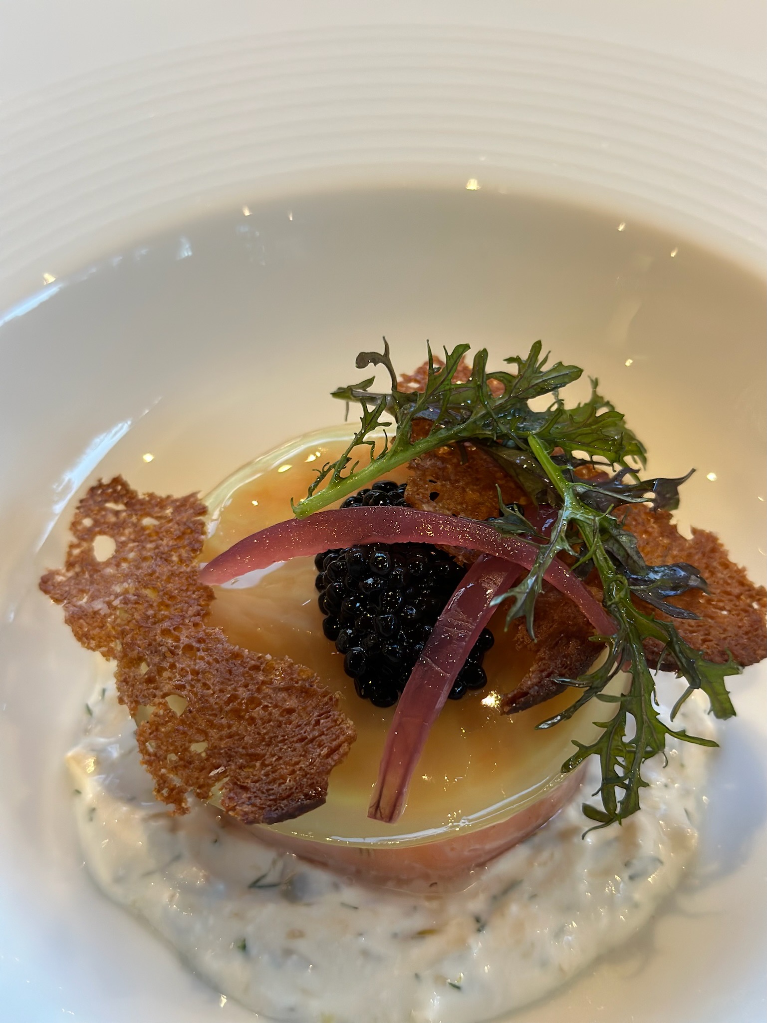 "Très bel endroit. Menu dégustation absolument délicieux. Personnel agréable et attentionné. Large choix sur la carte des vins et sommelier à l’écoute. Je recommande ce lieu pour un repas en amoureux."