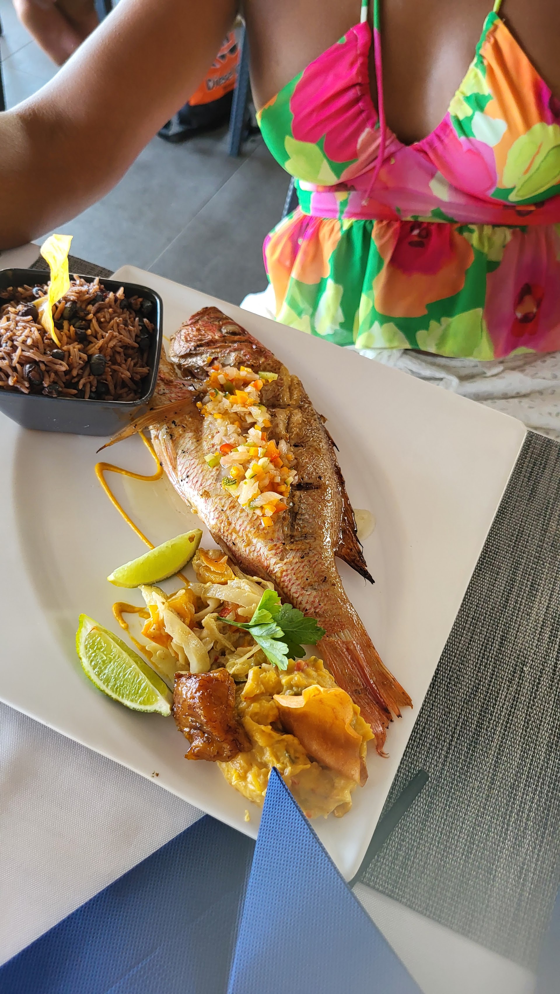 "Bel endroit à la décoration chaleureuse avec une vue mer magnifique. Cuisine raffinée et copieuse. Service rapide, attentionné, aimable et sympathique. Un sans faute."