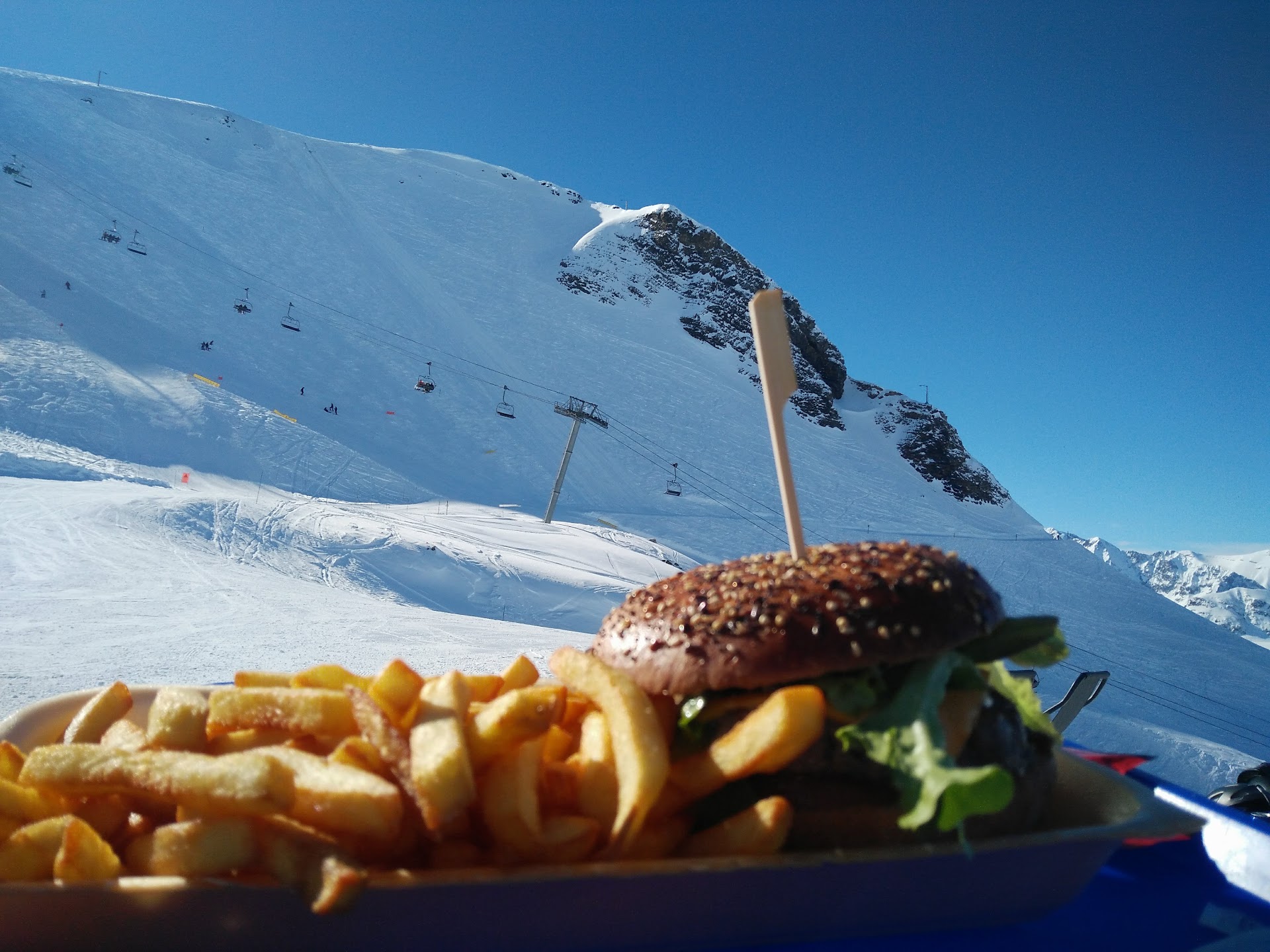 "Au milieu des pistes, bien exposé jusqu'en début d'aprÚs-midi, cuisine de piste copieuse et trÚs goûteuse, service rapide et souriant, belle carte variée. Fin d'aprÚs midi bar disponible et sympa avec transats mais à l' ombre"