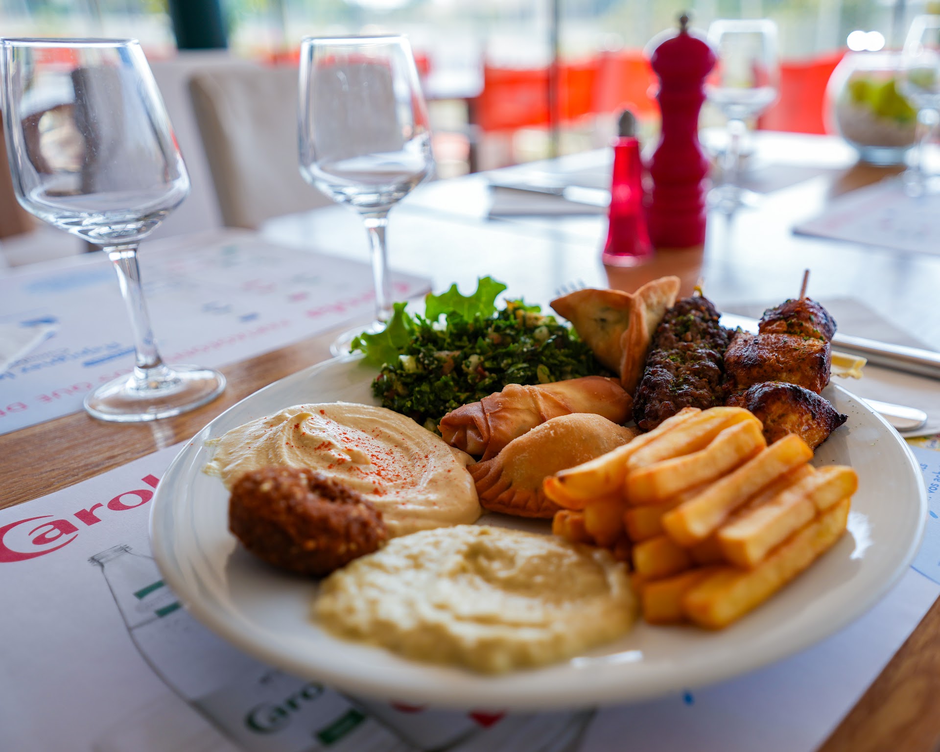"Dans le cadre du tennis club, un restaurant bien au calme, avec de trĂšs bons plats (en particulier les mezze)."