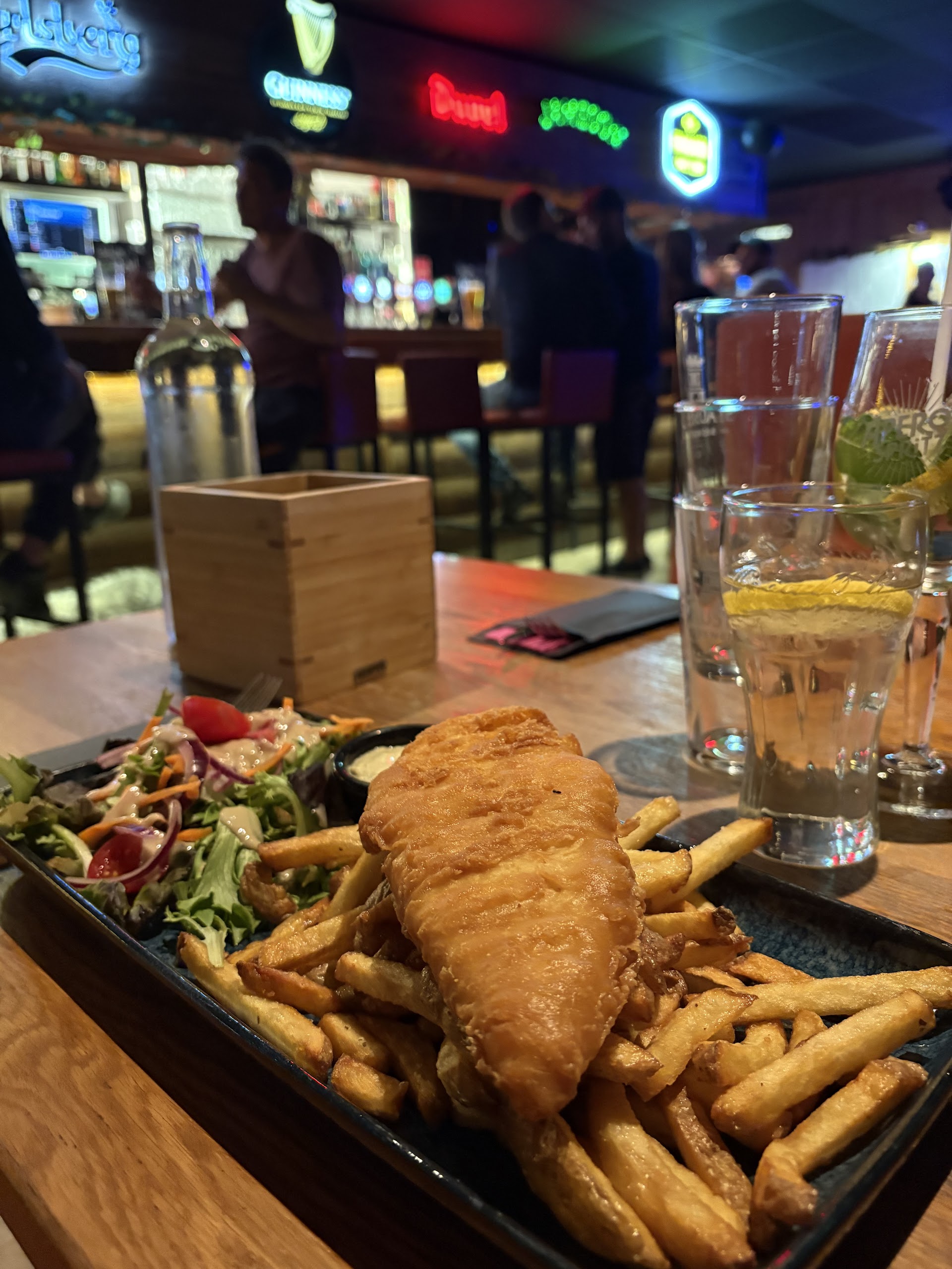 "Super Moment entre amis et famille, personnel serviable et super ambiance. Les plats étaient top et trouver des nuggets maisons c'est rare de nos jours ;) Je recommande virement !"