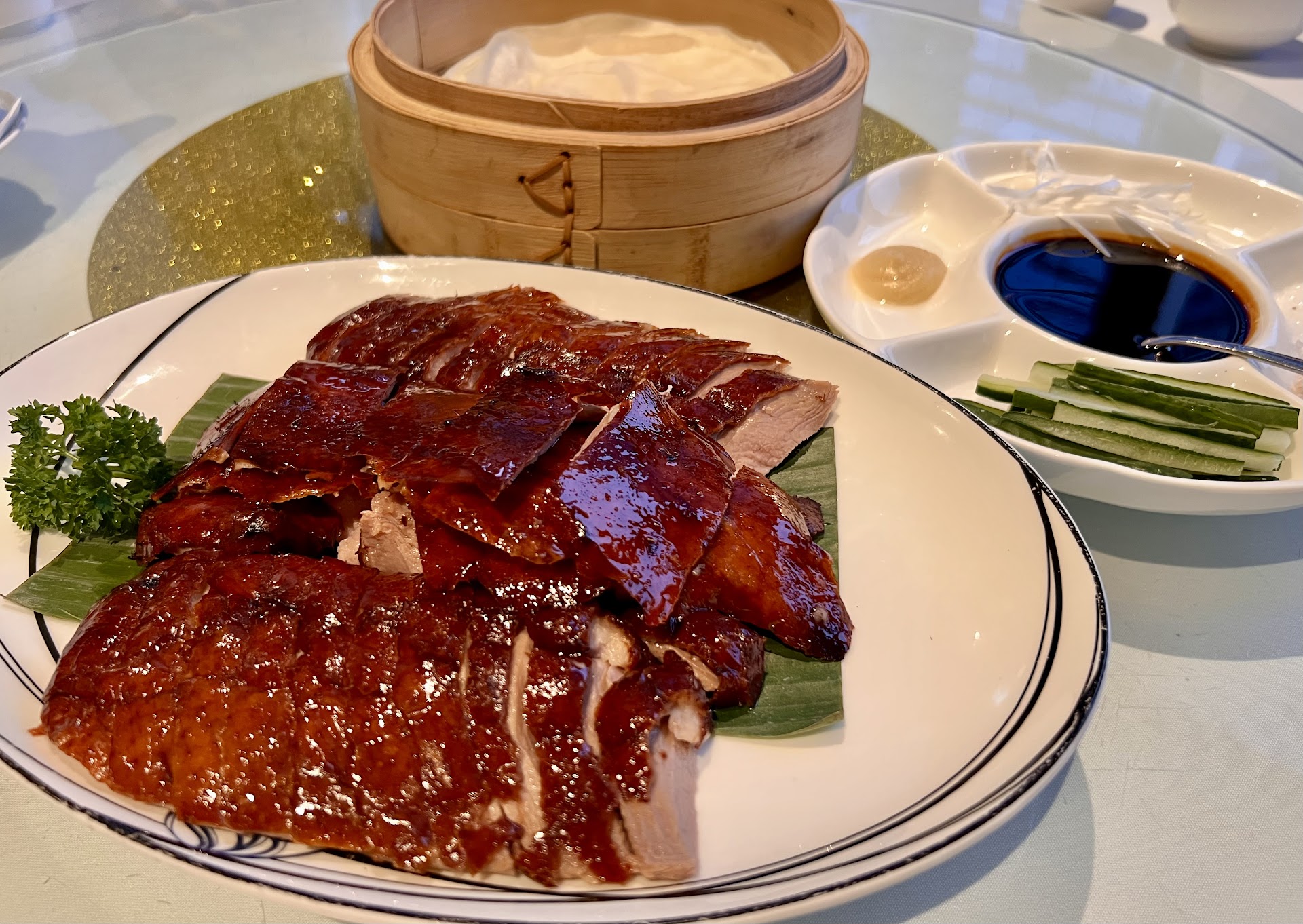 "Dans l'ensemble, le repas était bon. Nous avons beaucoup apprécié notre dîner. Le canard laqué reste le plat phare. Nous avons dégusté un canard entier, puis une demi-portion. La tarte aux œufs et au yuzu était également délicieuse."