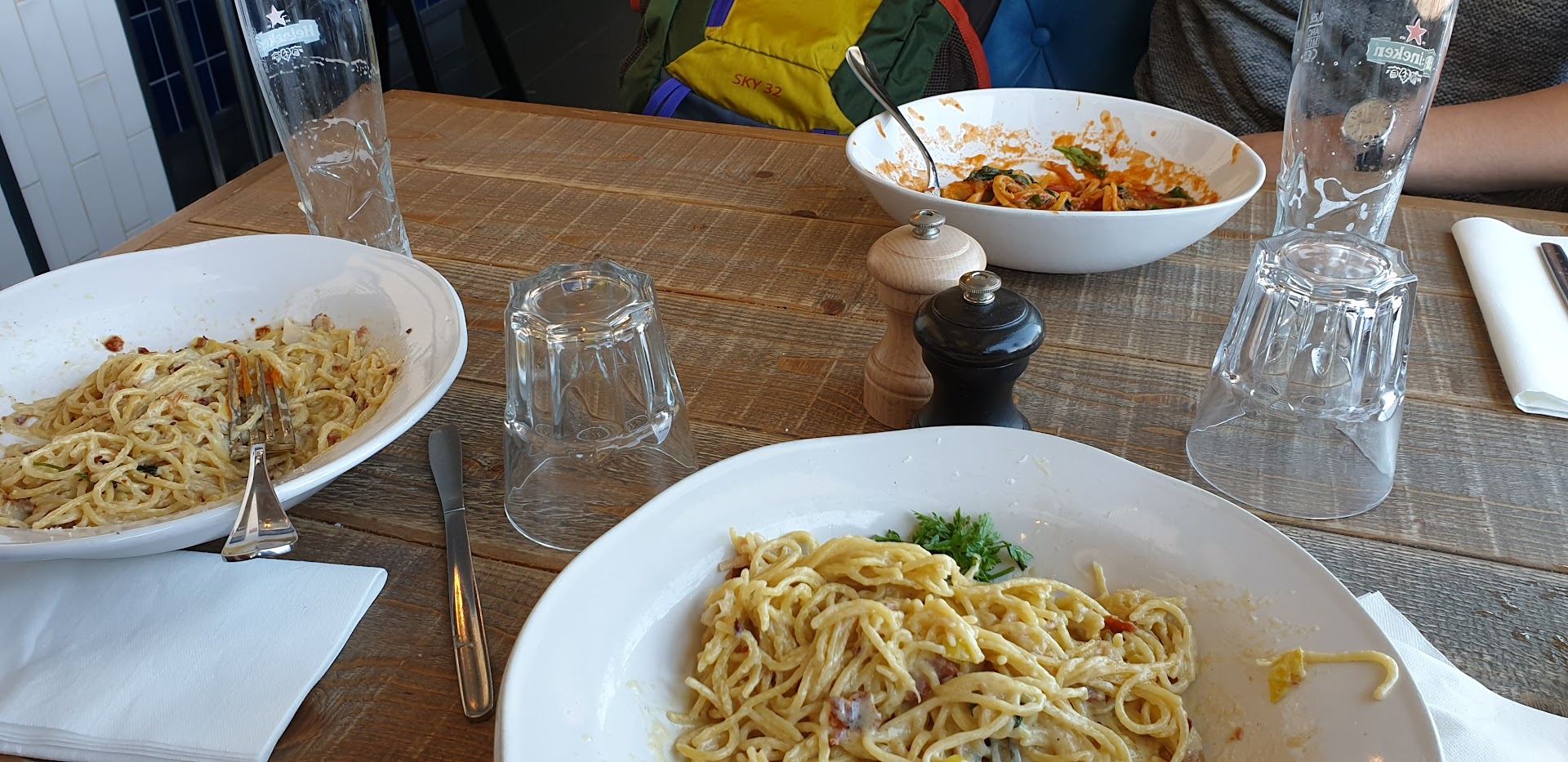 "Personnel trÚs sympathique et la pizza était trÚs bonne ( et la biÚre bien fraßche) ! Un bon repas!"
