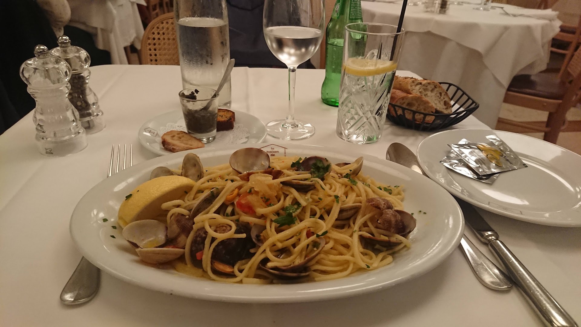 "SincĂšrement dĂ©licieux ! Nous avons pris la langouste ainsi que les pĂątes aux palourdes. TrĂšs bien cuisinĂ©s. Et pour le dessert, nous nous sommes rĂ©galĂ©s avec des profiteroles Ă la noisette. Un pur moment de dĂ©lectation. Le cadre est magique, loin du bruit de la rue commerçante. Câest un moment enchanteur au cĆur de Nice. Mais câest bon, alors on y reviendra."