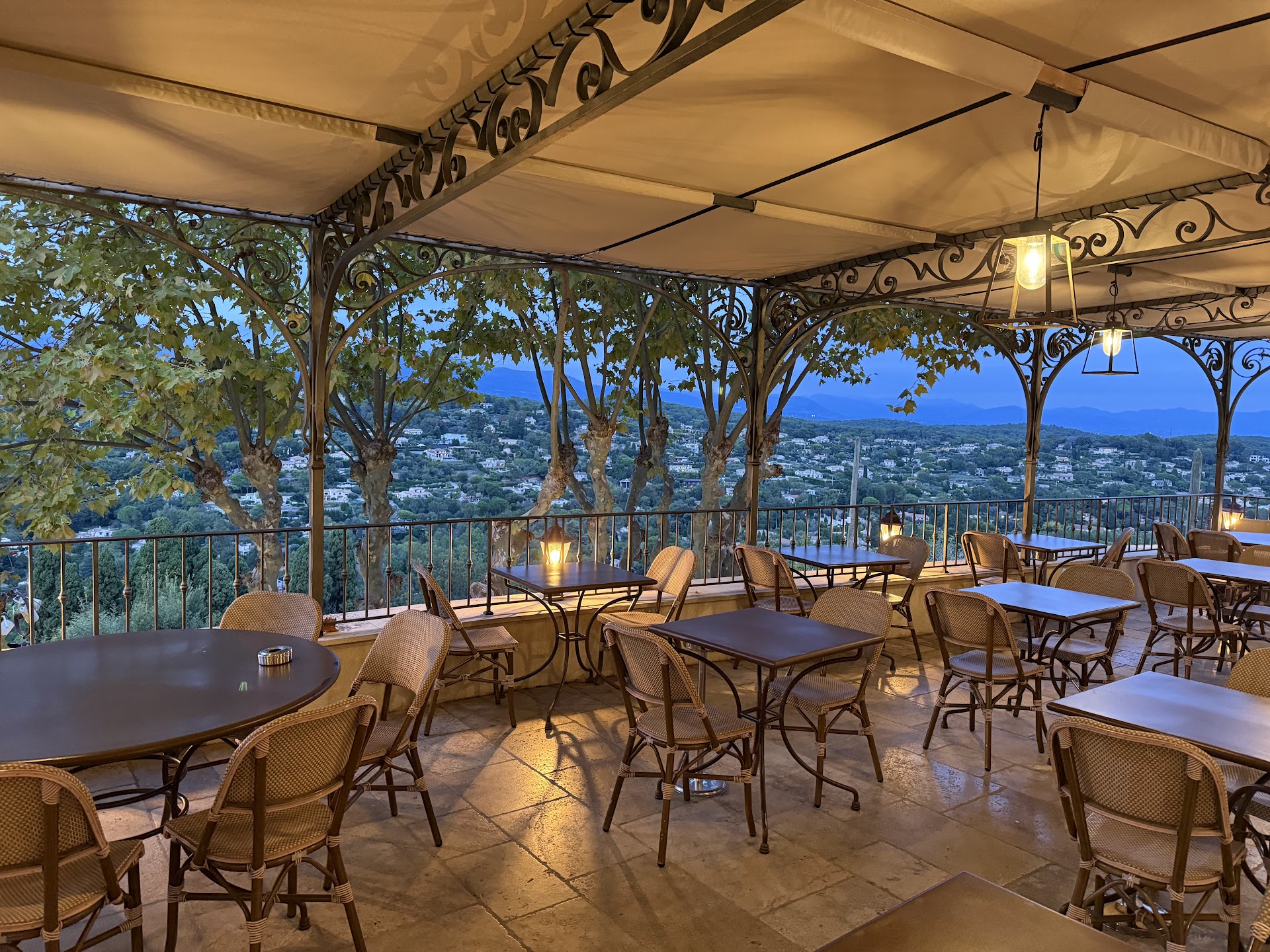 Gastronomie méridionale et élégance épurée pour cette table avec terrasse et vue sur les collines.