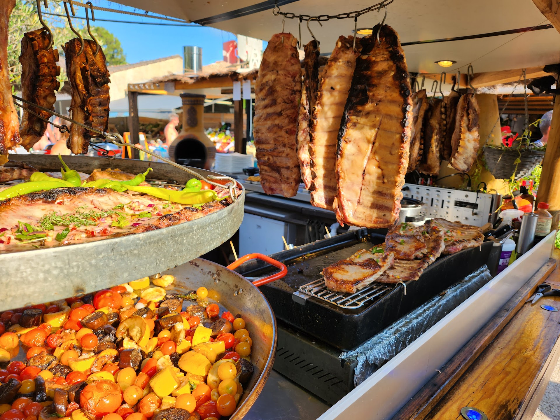 "Tout d'abord un grand merci à Patrick et son équipe de choc, nous sommes arrivés avec 4 enfants. Et nous avons été enchantée par le décor fait mains 🤲 à couper ✂️ le souffle 🌬️. Le petit pont 🌉 ou les aromates 🌿 ainsi que les poisson 🐠 nous transportent dans un autre monde.. C'est une belle parenthèse. C'est accueillant, calme et paisible. La disposition est bien pensée. Pour ce qui est du buffet, nous nous sommes régaler avec les patates 🥔 de Patrick cuitent à la graisse de canard 🦆 miam 🤤 🤤 et les toasts 🥪 foie gras ou chorizo avec une petite crème à la saveur et au très bon goût de poivron.... délicieux 😋 et puis il y a aussi des fruits de mer huîtres 🦐, les pinces de crabes 🦀, le saumon ainsi que le salade bar ou nous attend une pléiade de choix. On peut si on le désir avoir accès à une très bonne paella 🥘 cuite du jour et croyez moi quand je vous dis qu'elle est succulente. Bon choix de viande 🥩 également et on a la possibilité de choisir la cuisson.. ( pour ma part j'ai pris du bœuf 🥩 bien cuit. Et enfin, et la je ne sais pas qui a fait les tartes 🥧 mais celle à la poires 🍐 est un pure délice. Ça fond dans la bouche !!!!!!! 👄. Des ptis bonbons 🍬 pour les enfants et aussi pour les parents. Et comme il faisait chaud 🔥 on a même eu le droit à de la glace en verrine Préparer minute vanille coulis de 🍫 chocolat et crème chantilly. Le serveur passe régulièrement débarrasser les tables et demander si tous ce passe bien. La cartes des boissons est plutôt complète. Nous étions juste un peu dessus de 'e pas avoir eu de sirop de cassis. Mais en gros il y en a pour tous les goûts. Vous pouvez aussi si vous préférez manger à l'intérieur il y a une très belle salle de restauration. Venez voir par vous même, je vous assure que ça vaut le détour.. Arrêtez vous et tentez l'expérience. C'est obligé que vous allez aimer 😍 PS: pour le soir prévoir une petite laine ou autre pour les moustiques si vous mangez dans le jardin 😉. Re PS: les toilettes 🚾 sont propres en tous cas chez les filles. (Il y a possibilité de Groupon)"