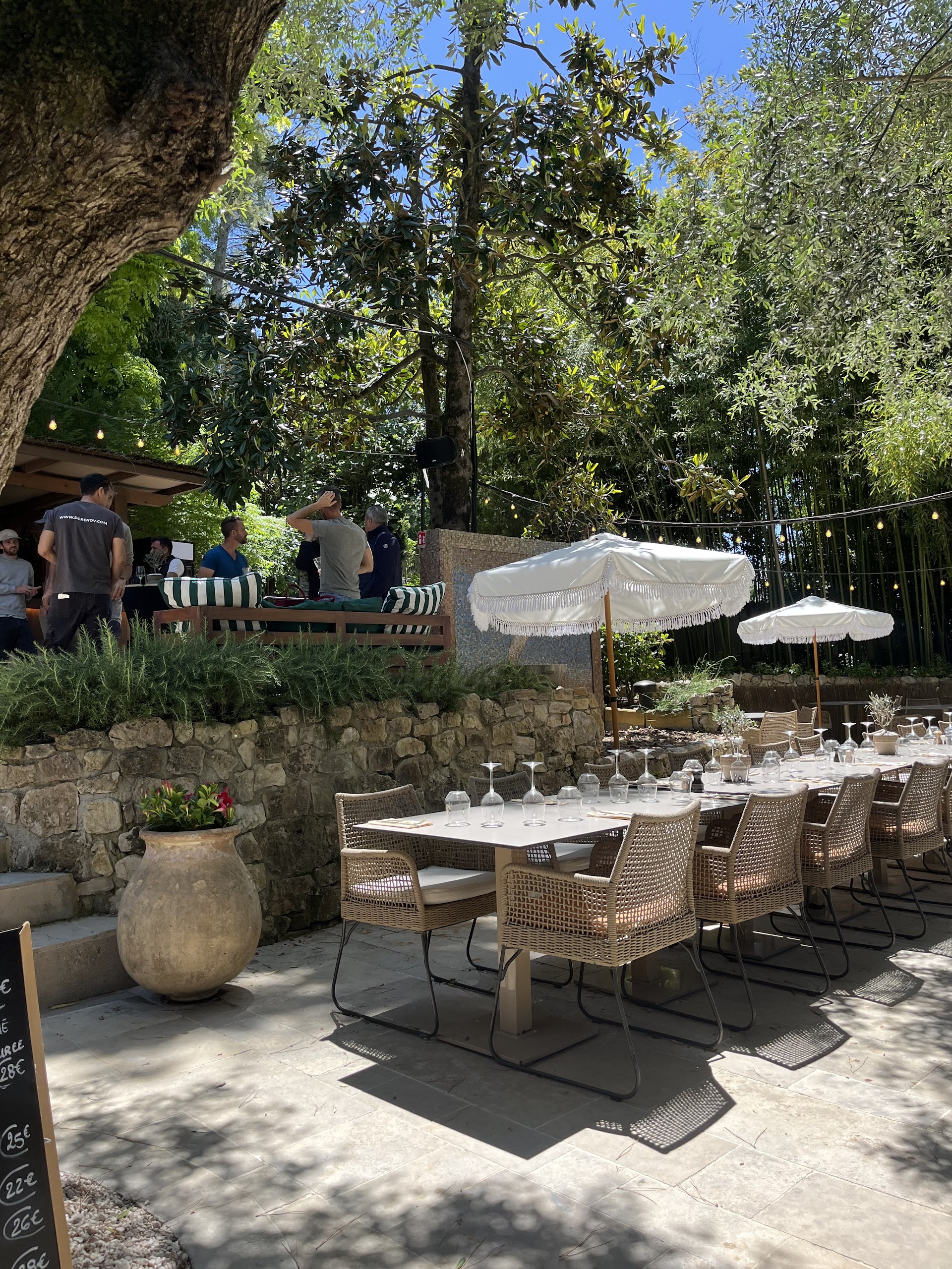 "Un excellent déjeuner d’équipe ! Nous avons déjeuné au Patio du Moulin de Mougins dans le cadre du repas de Noël entre collaborateurs de notre entreprise, et l’expérience a été remarquable du début à la fin. Le cadre est vraiment magnifique, alliant charme provençal et ambiance élégante. Les plats étaient à la fois savoureux et copieux, parfaitement présentés, avec des produits frais et des cuissons maîtrisées. Le service était accueillant et très professionnel. La réservation s’est également très bien déroulée grâce à une équipe disponible et réactive. Un endroit idéal autant pour un repas d’affaires que pour un moment convivial. Nous reviendrons sans hésiter aux beaux jours afin de profiter de la superbe terrasse à l’ombre de la bambouseraie. Tous les convives vous remercient pour votre accueil chaleureux et professionnel, qui a grandement participé à la réussite de ce moment partagé."