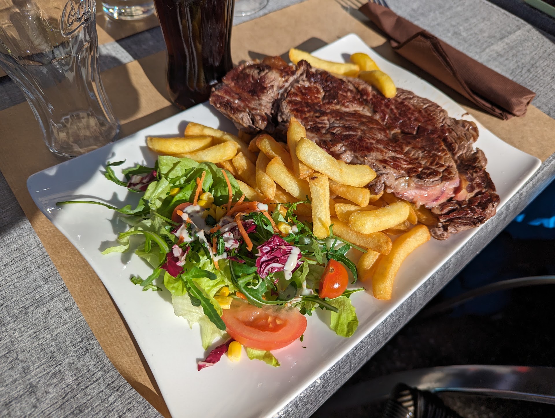 "Repas excellent On a pris hamburgers et tartiflette qui étaient excellents. En dessert un sorbet chartreuse arrosé généreusement, un vrai délice."
