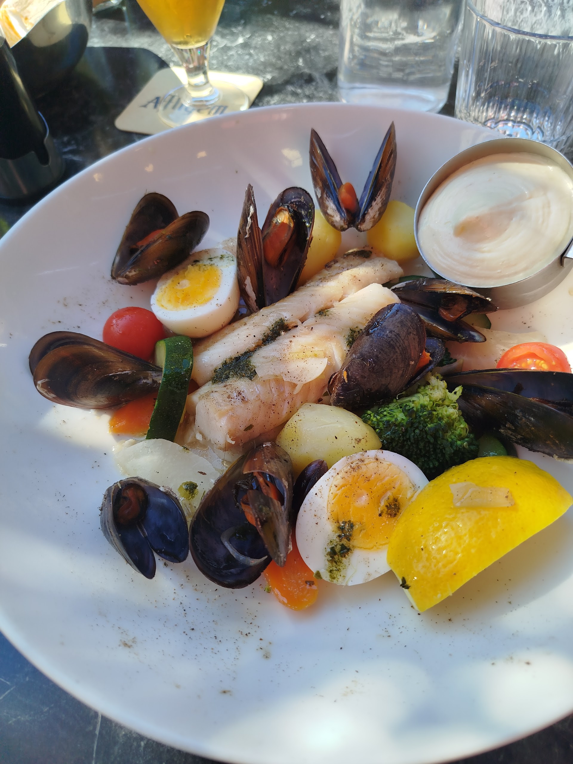 "Nous légions en face Odalyss et avons goûté enfin au plat du jour sur le conseil du serveur (qui a ensuite pris grand soin a sortir les filets du loup) et comme il a bien fait. Légumes croquants fondants et parfumés le jus versé sur le filet au concassé de légumes et son écrasé de pommes de terres a l'huile d'olive et ciboulette ? Il mériterait une étoile ce chef pour la générosité de sa cuisine et l'amour qu'il y met. Le serveur maßtre d'hÎtel est charmant. Nous reviendrons au Rossini."