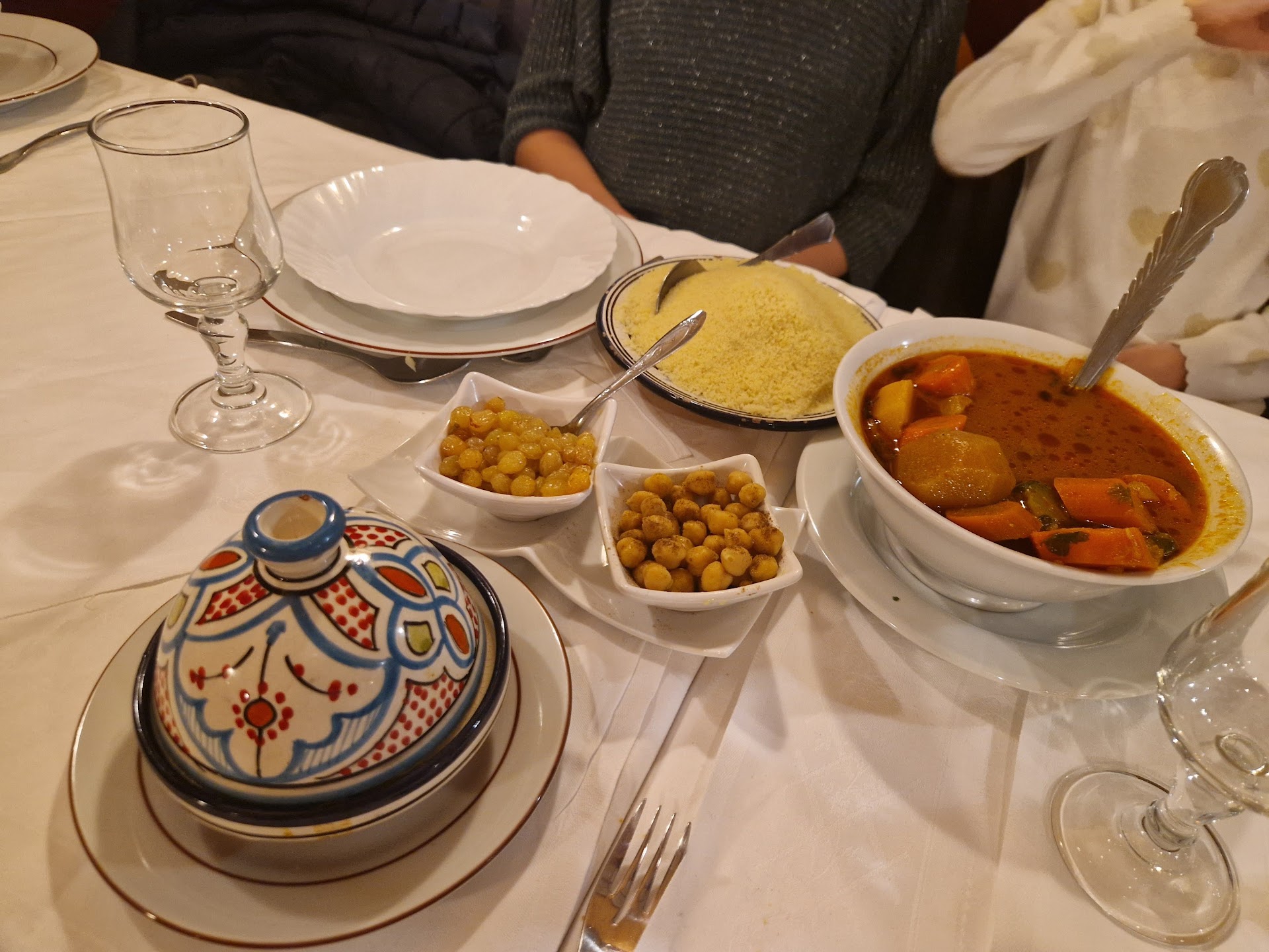 "Très bon restaurant marocain.. Nous y sommes retournés le 14 septembre dernier en famille à quatre... Toujours aussi bon j'adore les tajines en particulier, très bonnes pâtisseries , thé a la menthe et très bon vin conseillé par le chef....et surtout accueil formidable car très attentionné... Nous reviendrons, forcément Maj novembre 2024 Toujours aussi bon et accueil vraiment formidable ! Merci encore Ps pour les photos les plats de viandes des couscous n'étaient pas encore servis mais ils l'ont été et étaient très bons ! Didier"