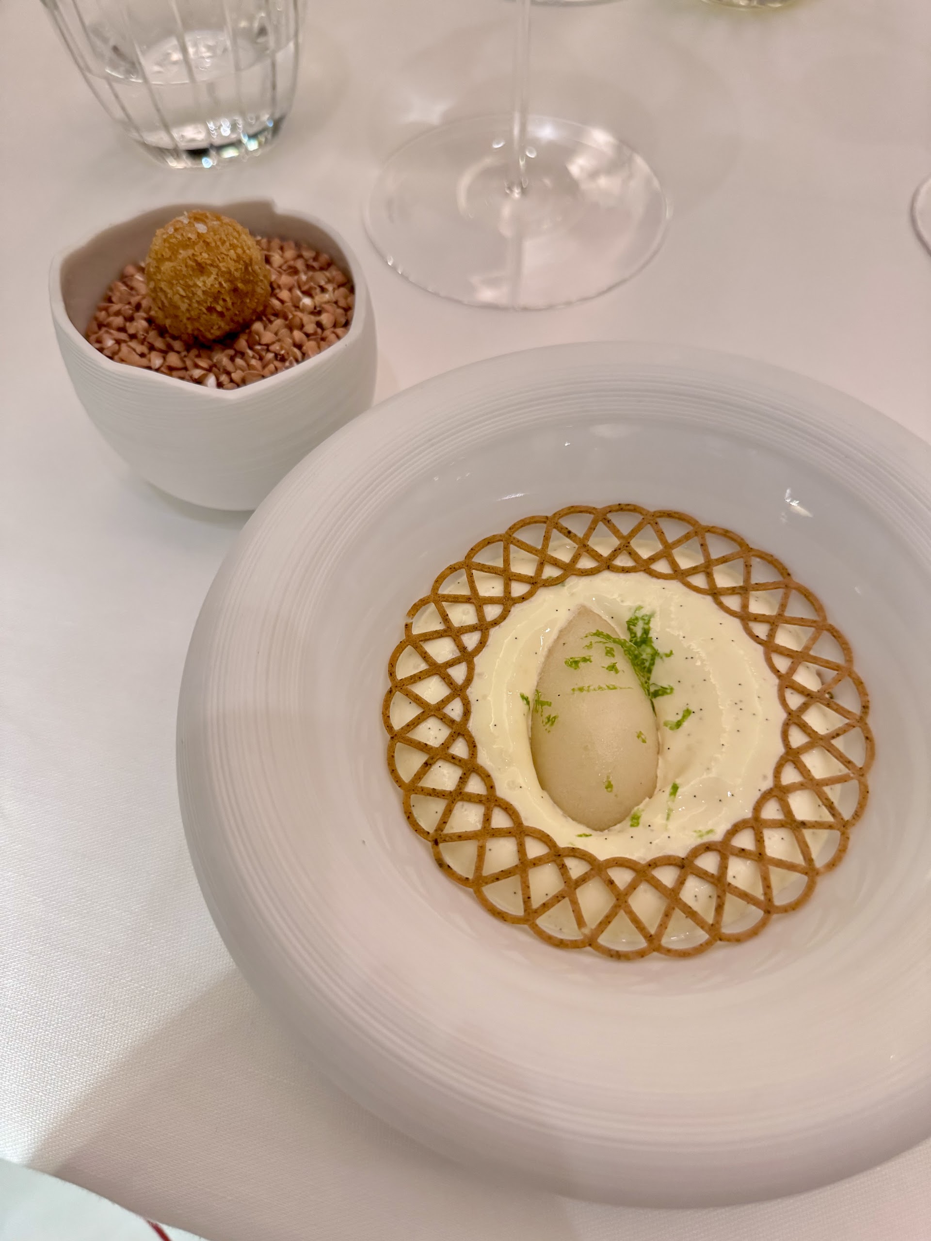 "Que dire de cette expérience? Un dîner de qualité dans un lieu d'exception, à la fois intimiste et chaleureux. Chaque plat de la séquence est parfaitement équilibré, travaillé autour de produits nobles et savoureux. Jolie surprise de la soirée, le chef est venu nous faire goûter une truffe blanche d'exception, délicatement râpée sur notre plat et s'accordant à la perfection avec chaque saveur. Le personnel du restaurant a aussi été exceptionnel, tant au niveau du service que de leur connaissance des produits et des plats. Je recommande vivement cette expérience."