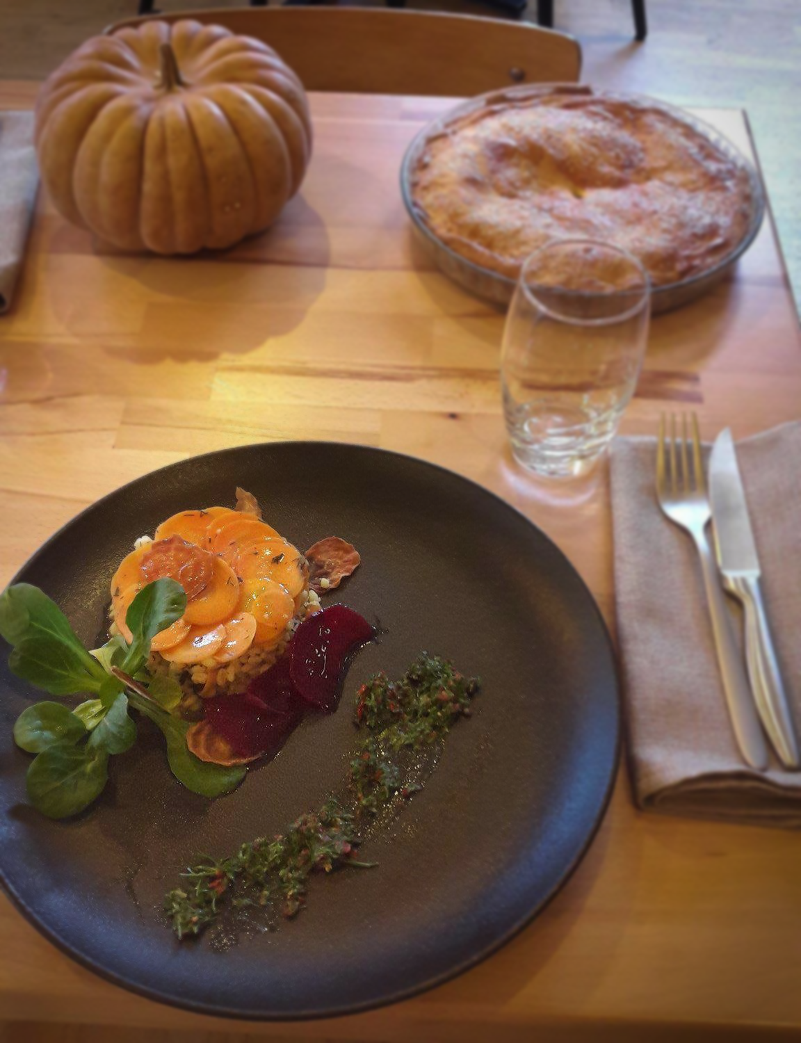 Restaurant de famille simple proposant des plats innovants et de saison, avec des options végétariennes.