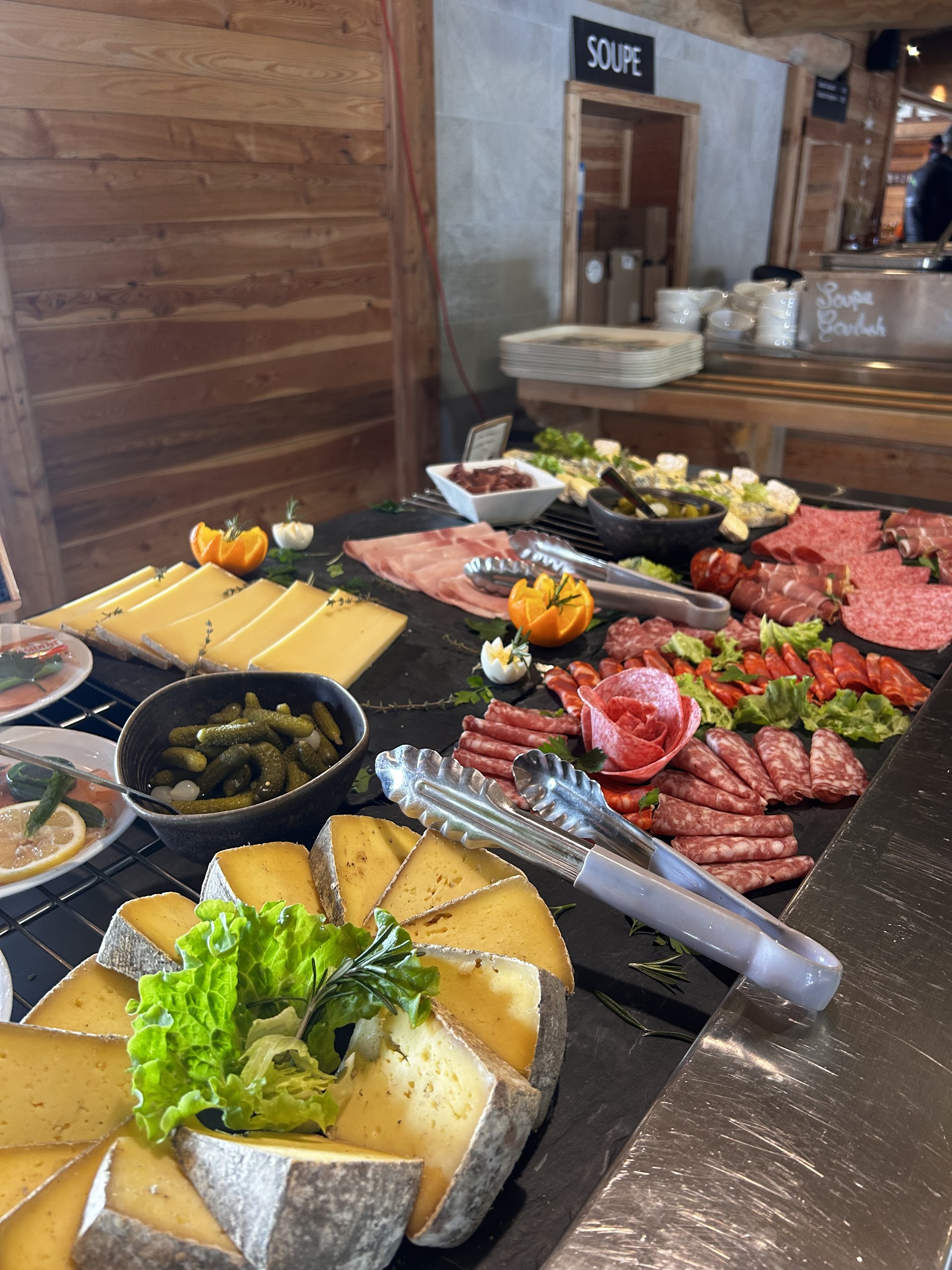"Enfin un self service de qualitĂ© et Ă prix raisonnable (plats env 10 âŹ) Portions trĂšs gĂ©nĂ©reuses, produits de qualitĂ© DĂ©jeuner en salle au 1er Ă©tage avec vue sur le mont blanc. CafĂ© en terrasse extĂ©rieure (tables trĂšs propres) Ambiance calme, serveurs et serveuses trĂšs agrĂ©ables."