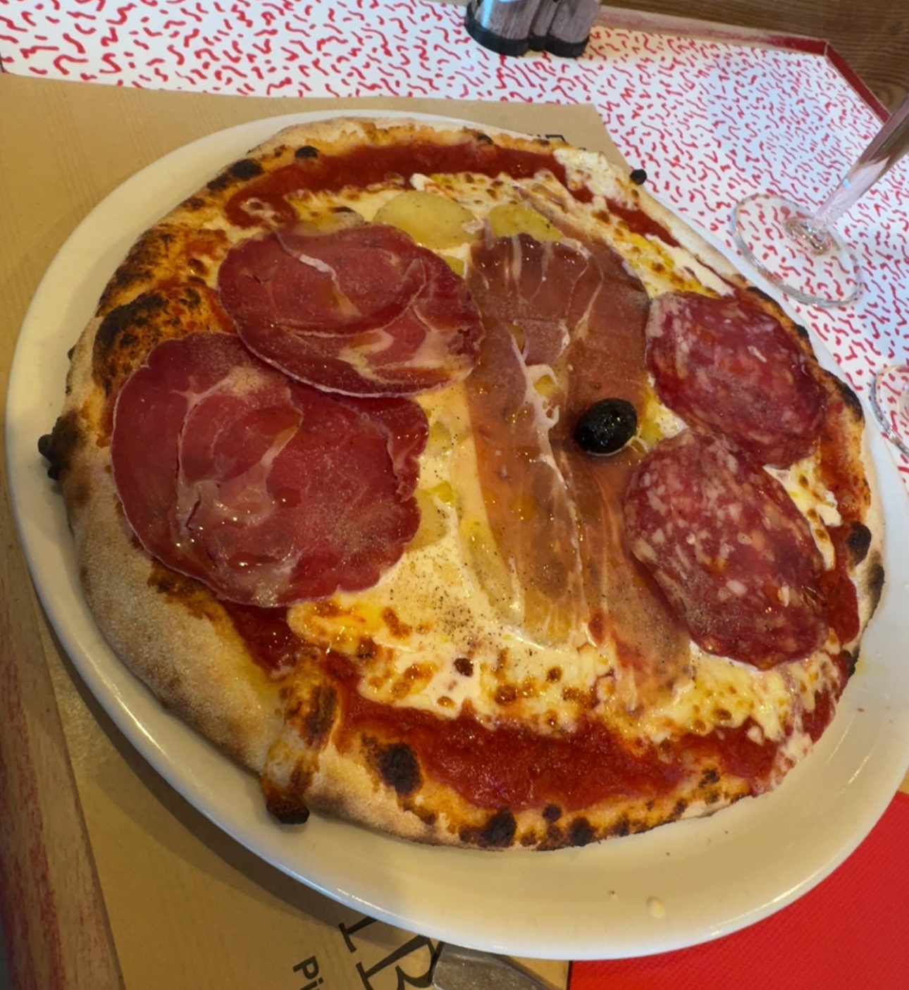 "Nous y sommes allés en famille un soir, ma femme et nos 2 enfants. Personnel trÚs agréable et patient avec notre petit garçon qui boudait a la commande car il n'y avait pas ce qu'il voulait, la serveuse a su lui parler et le prendre comme il faut, merci a elle. Les pizzas étaient trÚs bonnes, on c'est régalé et comme on n'a pas pu tout finir, on nous as gentiment fait une boßte avec nos restes. Les desserts étaient aussi trÚs bon. Bref nous avons trÚs apprécié notre repas dans ce restaurant."