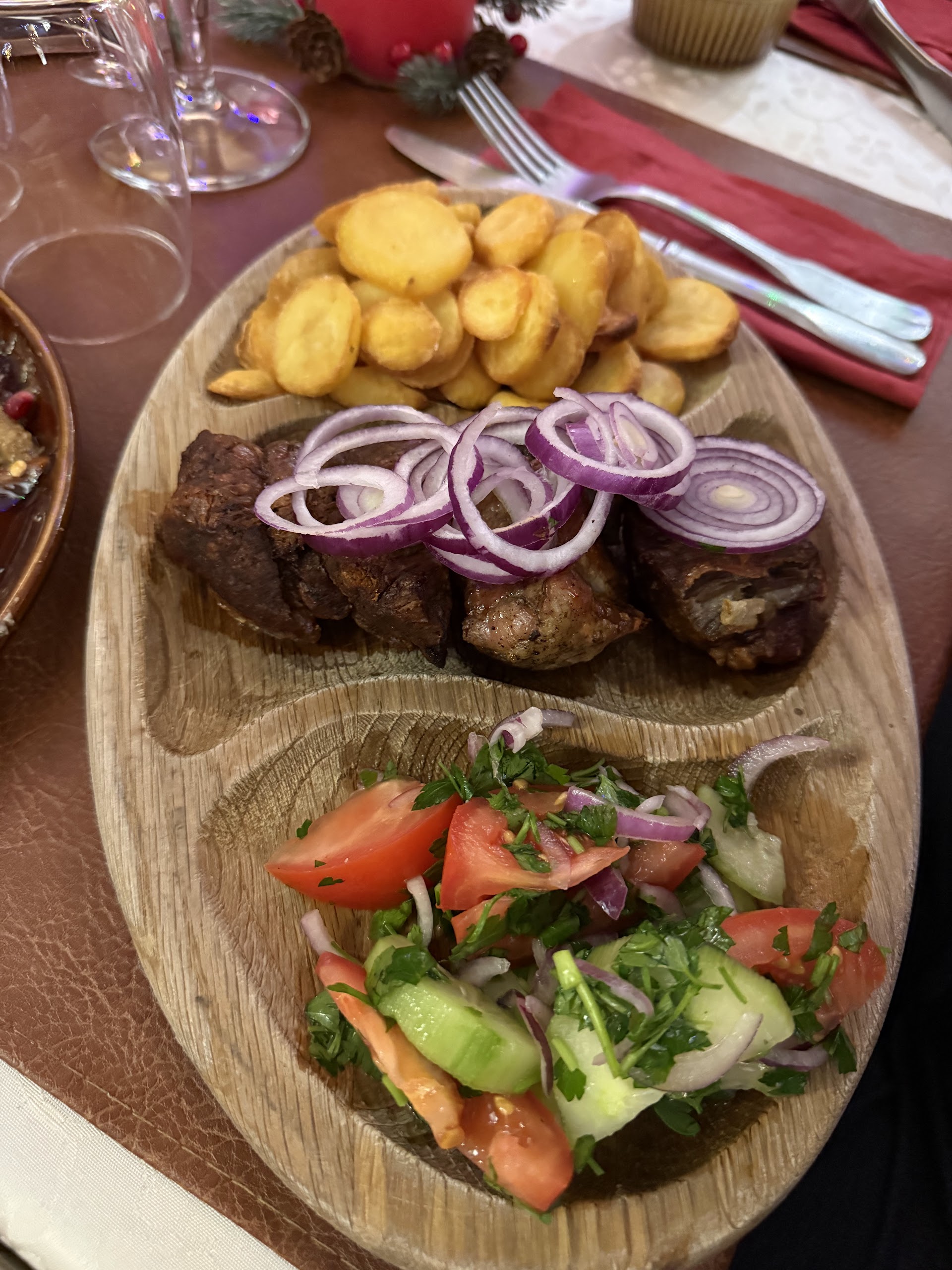 "Petit restaurant familiale Géorgien. J'adore ce genre de restaurant atypique. On y retrouve une cuisine maison toute simple mais efficace. Je ne suis jamais déçu. On est toujours bien accueilli. Mention spéciale pour le vin Géorgien : Kindzmarauli, un vin rouge sucré a essayé"