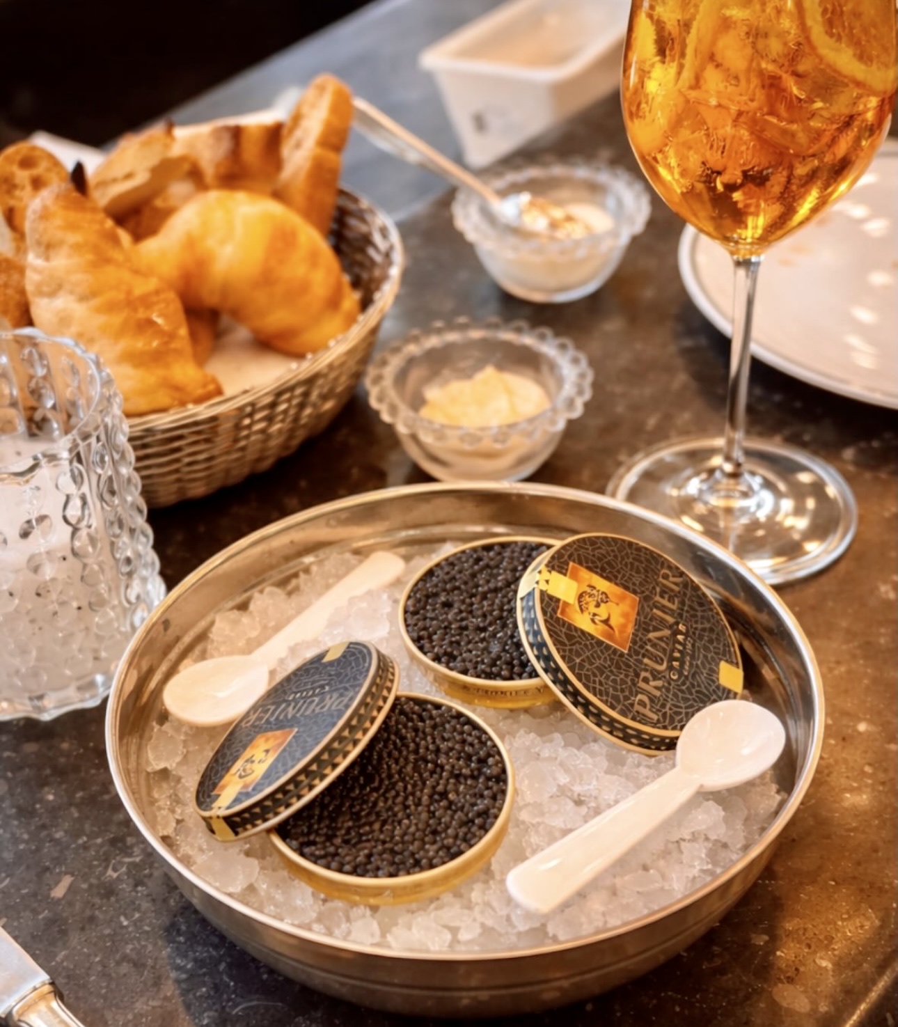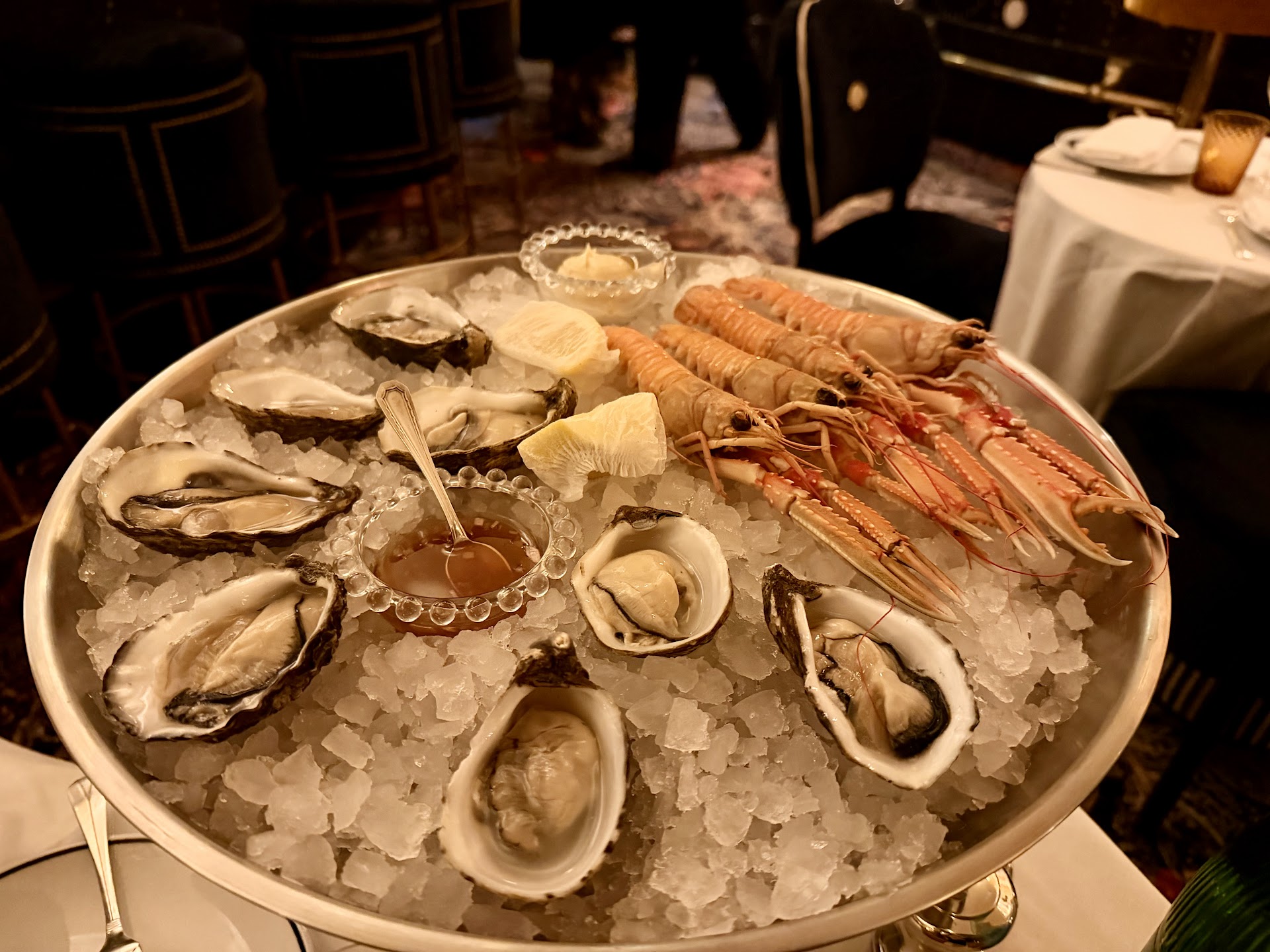 Ce restaurant élégant de style Art déco sert des fruits de mer et du caviar français qu'il produit lui-même.
