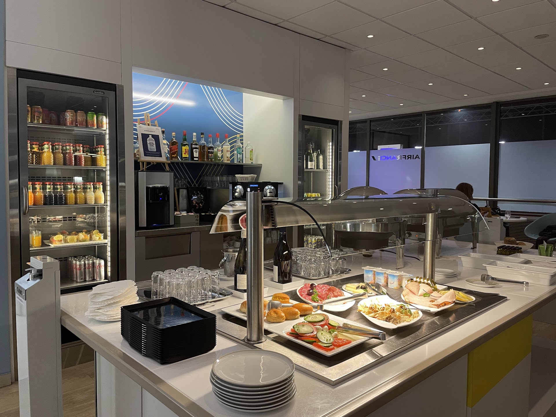 "TrĂšs bon accueil de la part du personnel. PrĂ©sence de douches. Offre de collation trĂšs satisfaisante : plat chaud, feuilletĂ©s chauds, charcuterie, fromages, salades⊠bon choix de boissons. (Choix restreint de desserts, seul bĂ©mol). Tables rĂ©servĂ©es pour Ultimate et gestion du prĂ©-embarquement Ultimate par le personnel du salon (câest plutĂŽt rare et apprĂ©ciable). TrĂšs bonne expĂ©rience dans ce salon AF."