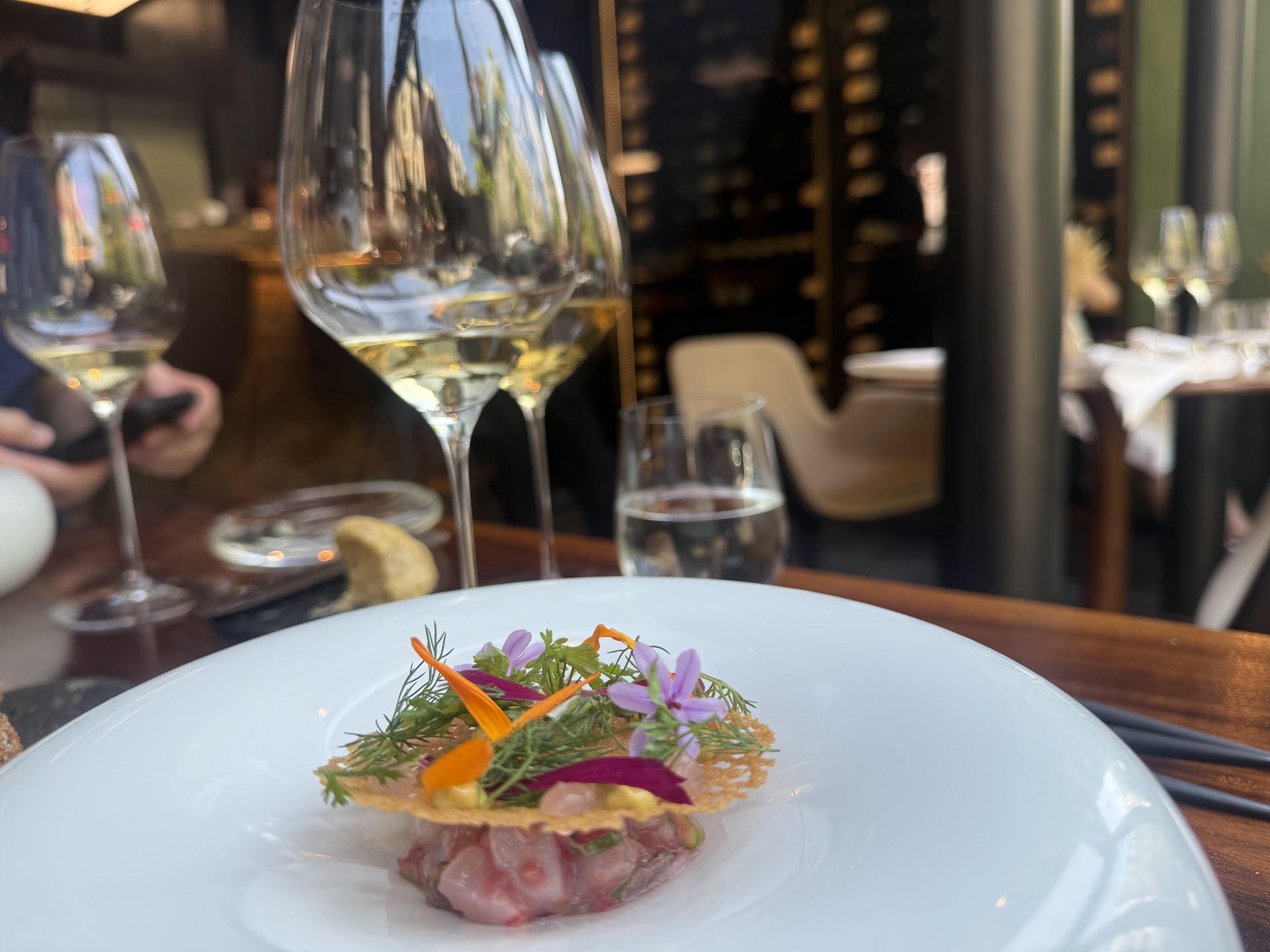"Tout était parfait ! Très belle expérience à deux au comptoir pour observer le spectacle donné par le chef Flavio Lucarini et son équipe en cuisine pendant plus de 3h toujours dans un calme absolu. Les plats sont puissants et la découverte de saveurs variées est incroyable. Côté salle, le service est très chaleureux, professionnel et sympathique. Merci pour la bougie d’anniversaire et pour tout !"